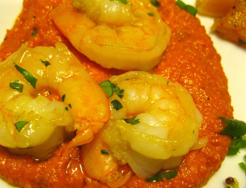 shrimp and romesco Published December 29, 2012 at 2243 × 1716 in Roasted Red Grape and Ricotta Crostini, Kale Avocado Salad, and Killer Romesco Sauce