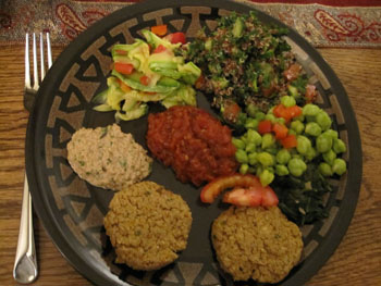 Muhammara: I’ve made many variations of Muhammara, and I like the one in Claudia Roden’s The Book of Jewish Food the best. I modified it to replace the whole wheat bread it calls for. I often serve this as an appetizer with pita chips.