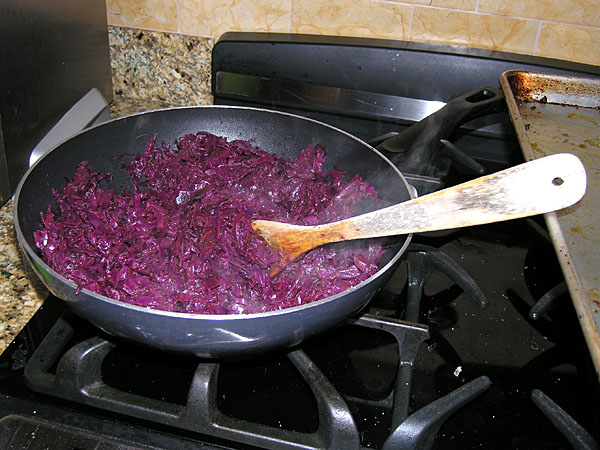 The braised red cabbage with apples recipe came from the New York Times, and I made it a day in advance because the recipe said it would be better that way.