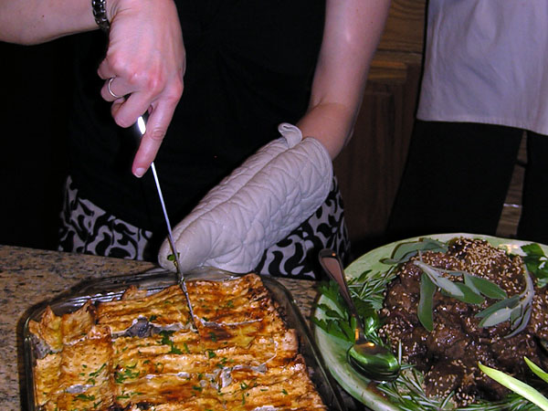 On first read, you might think it’s a lot of work, but it goes quickly and you can do other things while some of the vegetables are sauteeing. When I first read the recipe, I was skeptical–layering matzoh with other foods brought me back to Sunday School and the “cake” we made with alternating layers of matzoh and canned chocolate frosting. I got over that and actually thought the matzoh made a light layering base.